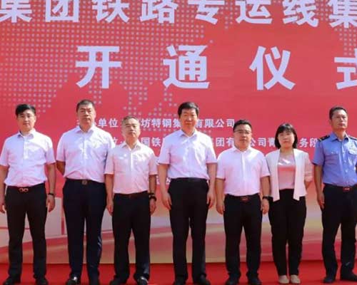 中國鐵路濟南局集團有限公司青島車務(wù)段段長趙敏發(fā)表祝賀致辭,指出濰坊特鋼集團作為濰坊市的企業(yè),在踐行社會責任和助力“雙碳”工作方面一直走在前列。今天的開通儀式,標志著濰坊特鋼集團在清潔運輸“公轉(zhuǎn)鐵”上升到了新的臺階,祝愿特鋼集團在建設(shè)綠色標桿、打造百年綠色發(fā)展企業(yè)之路上,繼續(xù)闊步前行。