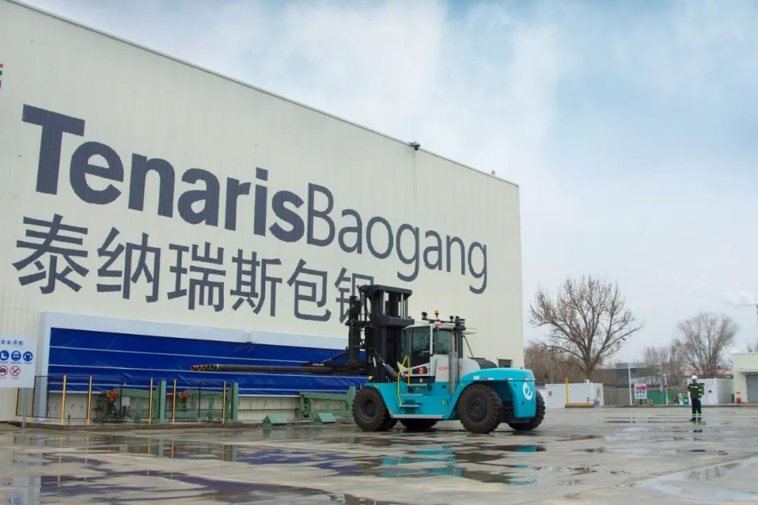 泰納瑞斯是一家來自盧森堡的跨國集團,該公司以無縫鋼管制造而聞名于世界。2020年,泰納瑞斯與包鋼正式牽手,成立泰納瑞斯包鋼(包頭)鋼管有限公司,為石油天然氣行業提供高性能油氣鉆采用特殊扣油套管,項目于2021年年底正式投產,并于同期購入兩臺科尼20噸重型叉車,用于鋼管搬運。