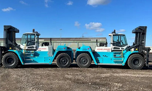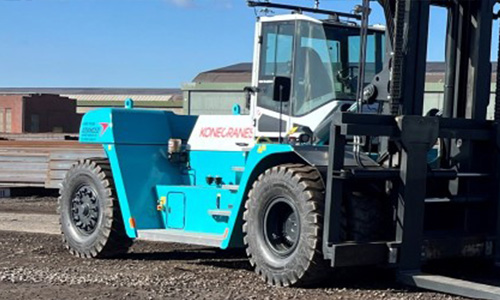 長型鋼材的搬運對于設備有嚴苛要求,由于尺寸和重量差異很大,要求運輸設備必須能夠針對不同負載進行調節,并能夠在現場各種空間內操作。因此,英國蒂賽德鋼鐵公司選用兩臺叉車完成長鋼產品轉運。